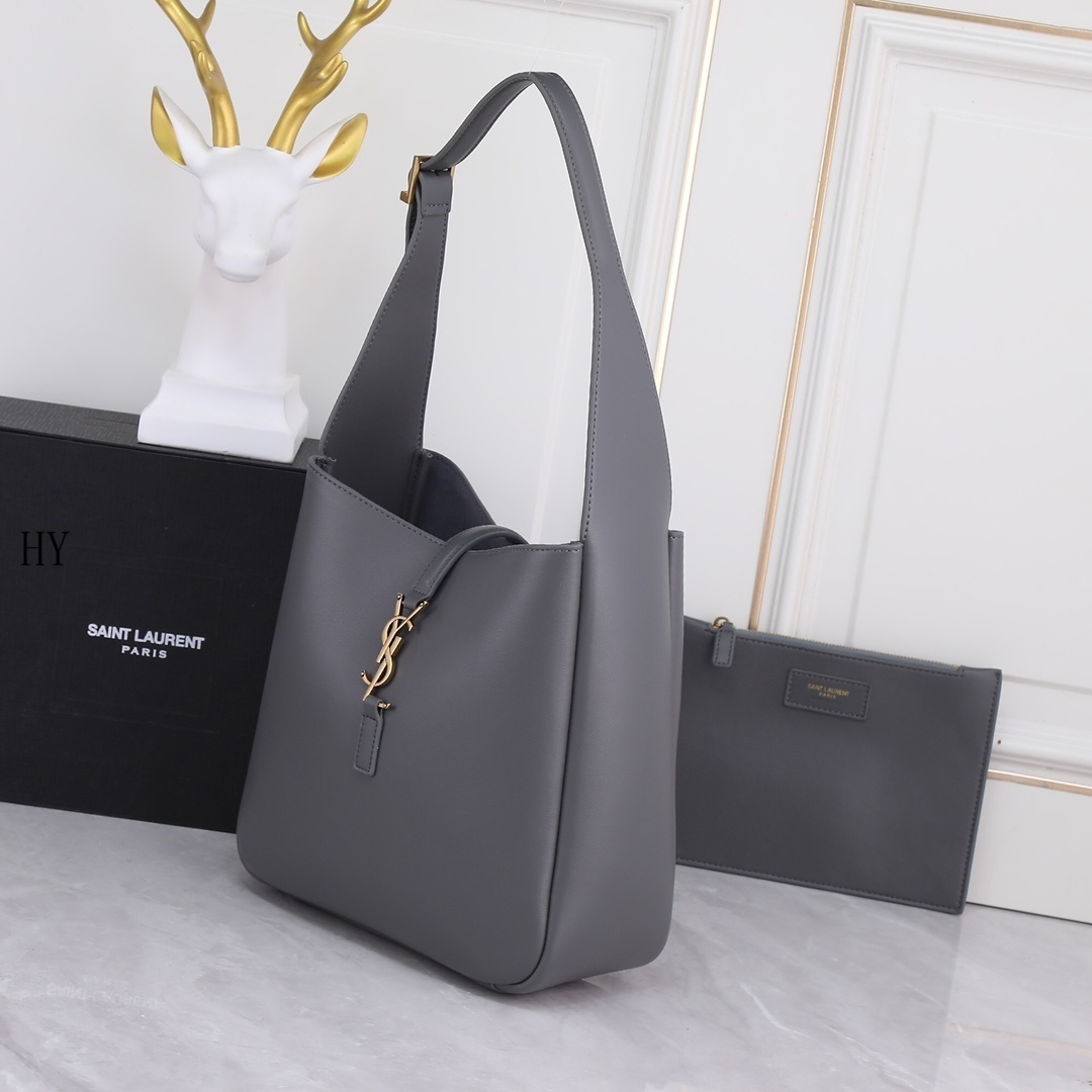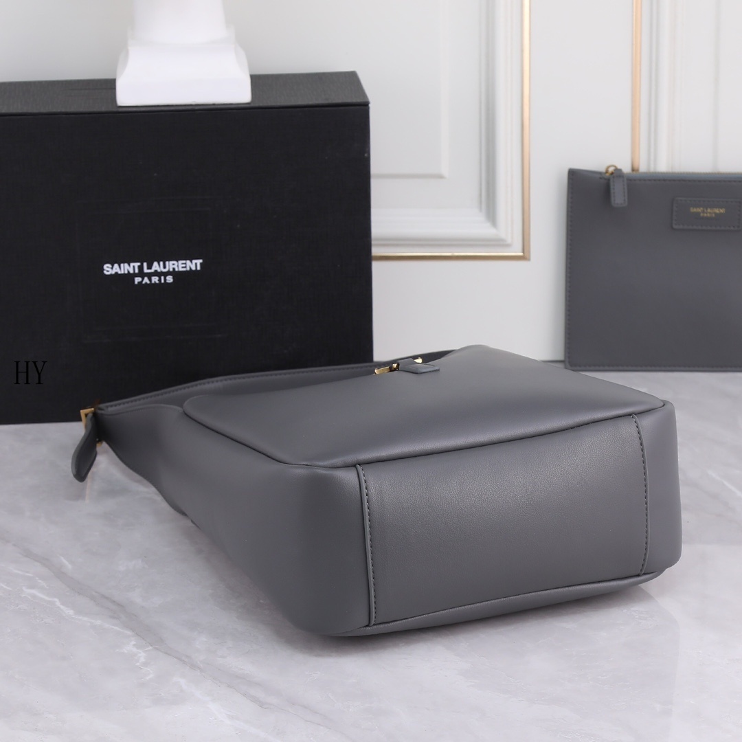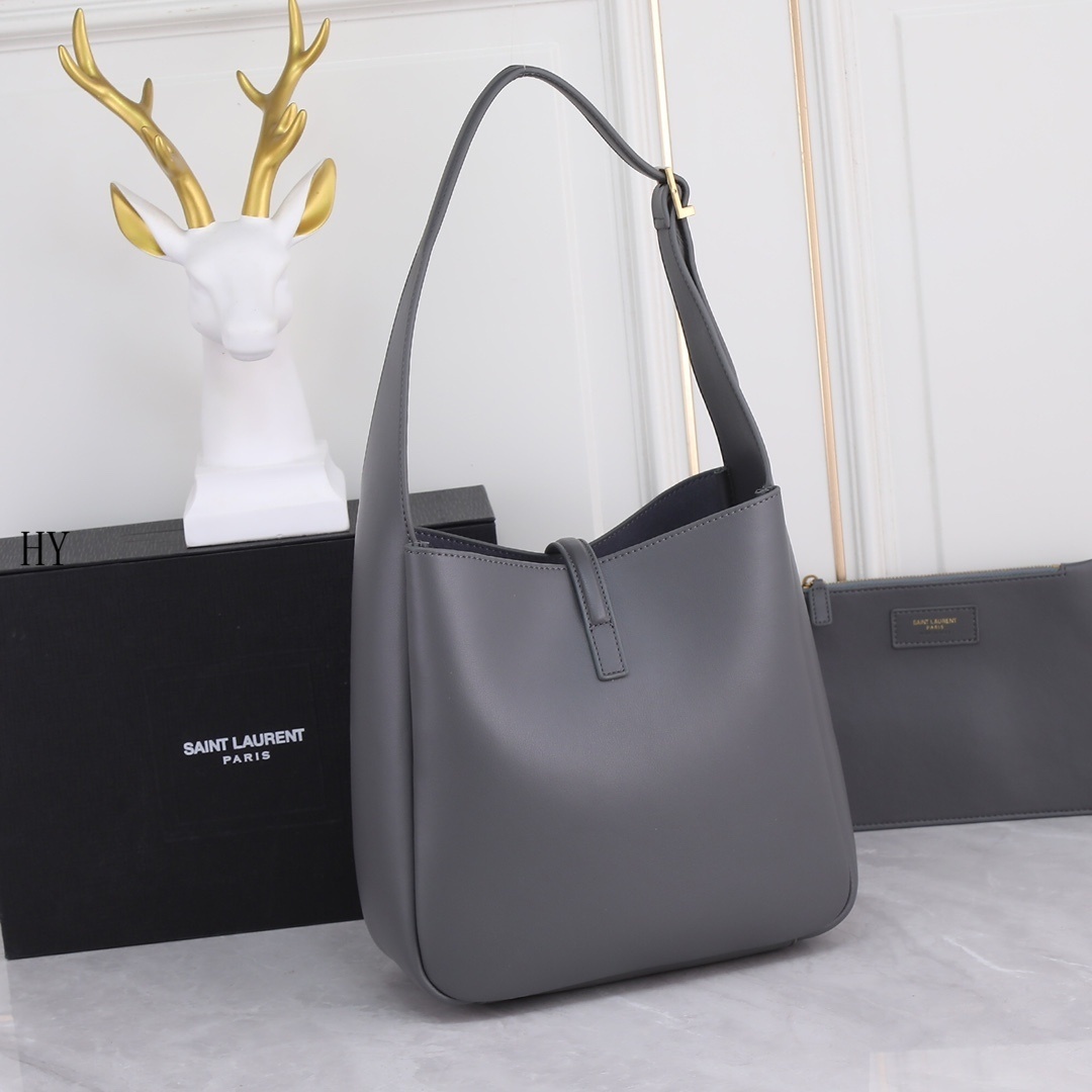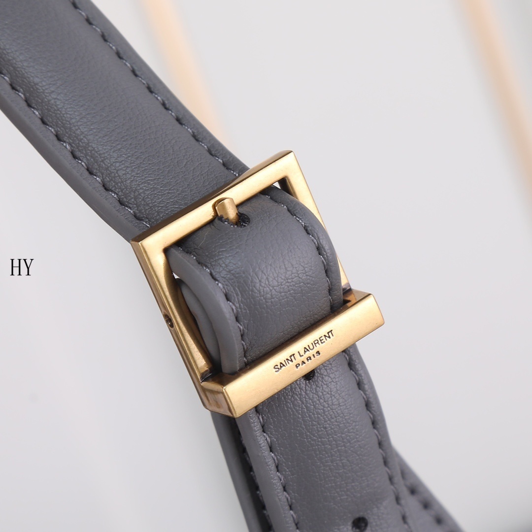 Elevate your accessory collection with this Yves Saint Laurent handbag, crafted from premium grey leather. The iconic YSL logo adds a touch of luxury, while the spacious interior ensures you have ample room for your essentials.
